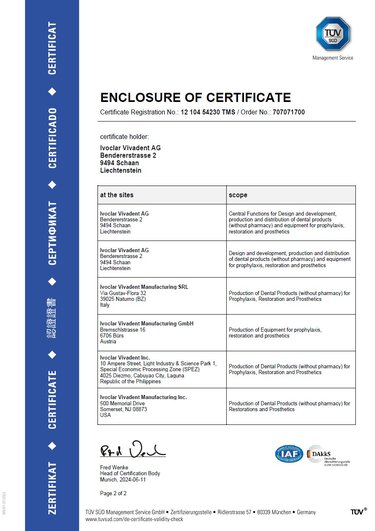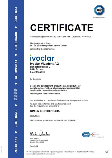 Our environmental management system complies with the internationally recognized ISO 14001 standard. Therefore, the company fulfils all the specifications with regard to operational environmental management. We take relevant environmental aspects into consideration in the planning, management, monitoring and improvement of all operational processes. Our environmental management system was successfully introduced and certified by TÜV-SÜD at our production facility in Italy. Subsequently, it was implemented in Liechtenstein, followed by the US, the Philippines and Austria.