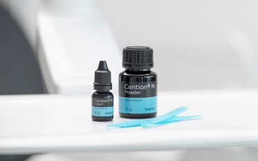 Cention N no requiere el uso de un primer ni barniz, y no necesita necesariamente un dispositivo de curado. Se pueden ahorrar hasta siete pasos de trabajo en comparación con la aplicación de cementos convencionales de ionómero de vidrio.